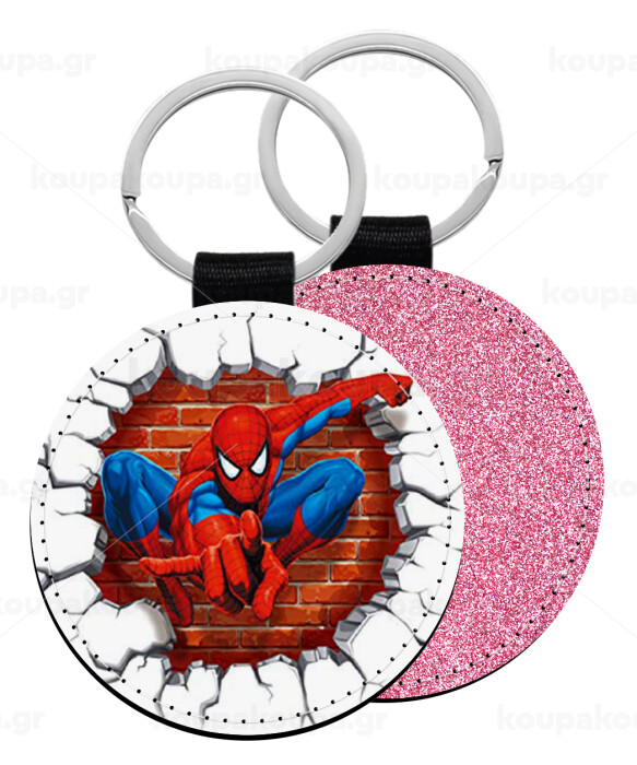 Spiderman wall, Μπρελόκ Δερματίνη, στρογγυλό ΡΟΖ (5cm)