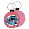 Stitch hello!!!, Μπρελόκ Δερματίνη, στρογγυλό ΡΟΖ (5cm)