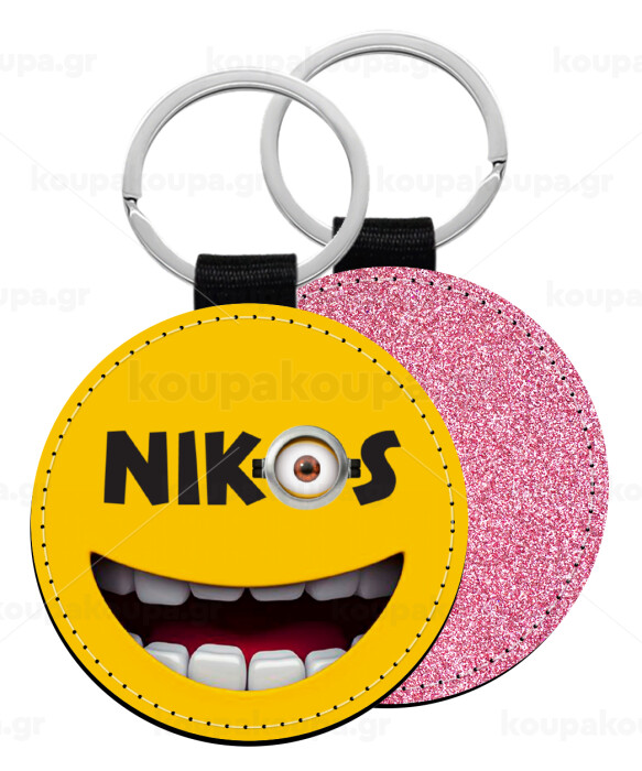 The minions, Μπρελόκ Δερματίνη, στρογγυλό ΡΟΖ (5cm)
