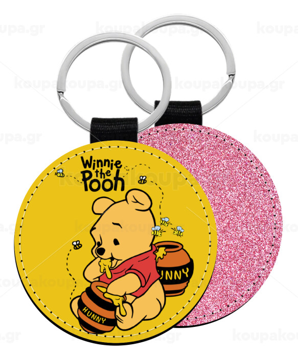 Winnie the Pooh, Μπρελόκ Δερματίνη, στρογγυλό ΡΟΖ (5cm)