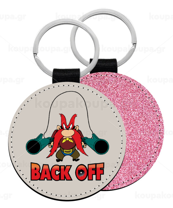 Yosemite Sam Back OFF, Μπρελόκ Δερματίνη, στρογγυλό ΡΟΖ (5cm)