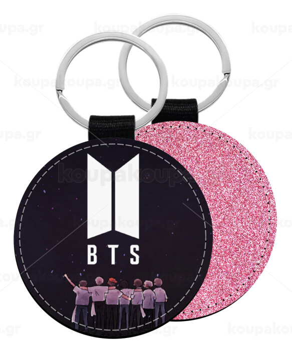 BTS, Μπρελόκ Δερματίνη, στρογγυλό ΡΟΖ (5cm)
