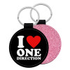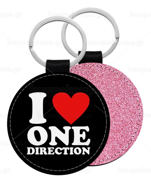 I Love, One Direction, Μπρελόκ Δερματίνη, στρογγυλό ΡΟΖ (5cm)