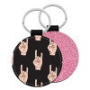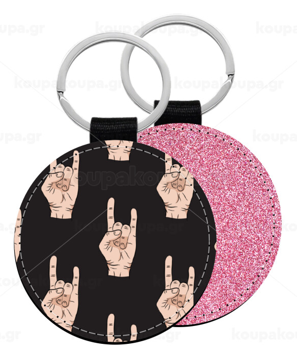 Rock hands, Μπρελόκ Δερματίνη, στρογγυλό ΡΟΖ (5cm)