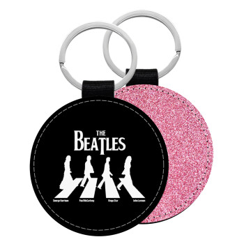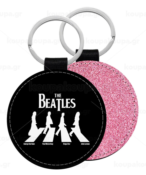The Beatles, Abbey Road, Μπρελόκ Δερματίνη, στρογγυλό ΡΟΖ (5cm)
