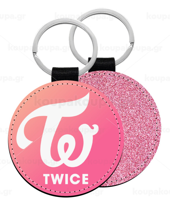 Twice, Μπρελόκ Δερματίνη, στρογγυλό ΡΟΖ (5cm)
