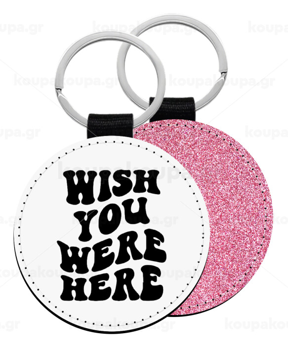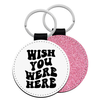 Wish you were here, Μπρελόκ Δερματίνη, στρογγυλό ΡΟΖ (5cm)