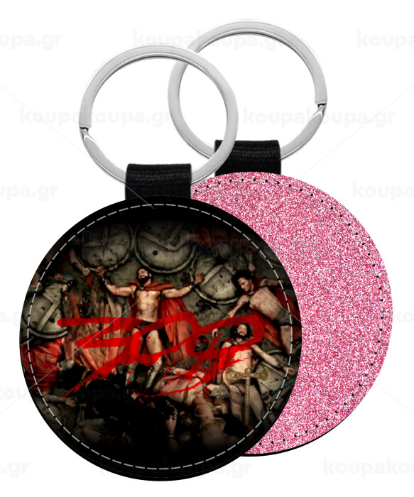 300 the spartans, Μπρελόκ Δερματίνη, στρογγυλό ΡΟΖ (5cm)