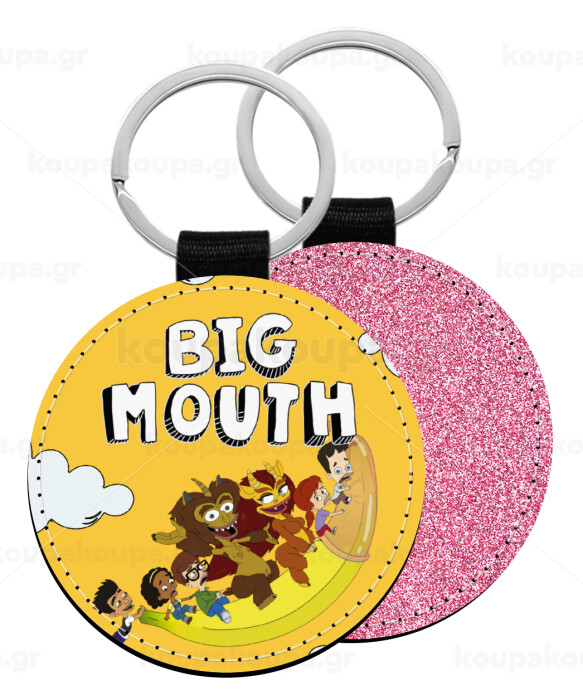 Big mouth, Μπρελόκ Δερματίνη, στρογγυλό ΡΟΖ (5cm)