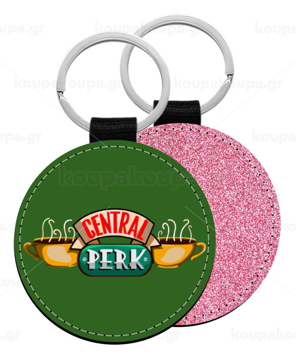 Central perk, Μπρελόκ Δερματίνη, στρογγυλό ΡΟΖ (5cm)