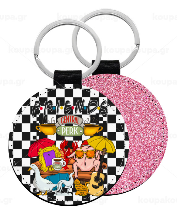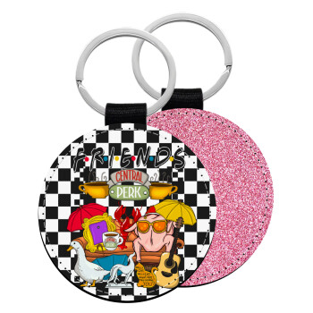 Friends, Μπρελόκ Δερματίνη, στρογγυλό ΡΟΖ (5cm)