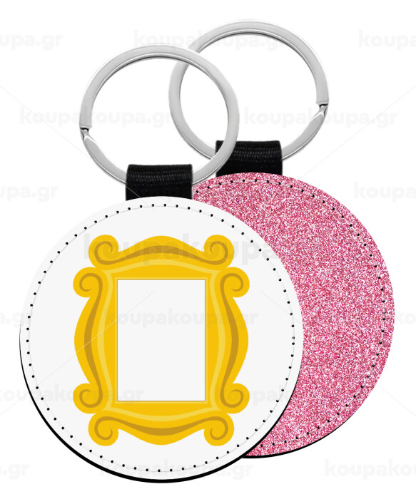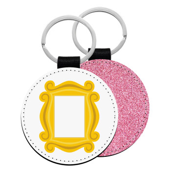 Friends frame, Μπρελόκ Δερματίνη, στρογγυλό ΡΟΖ (5cm)