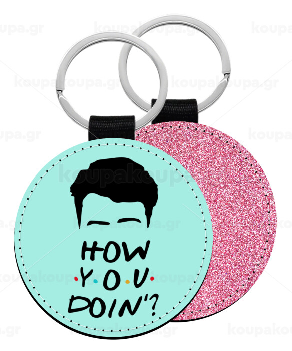 Friends how you doin?, Μπρελόκ Δερματίνη, στρογγυλό ΡΟΖ (5cm)