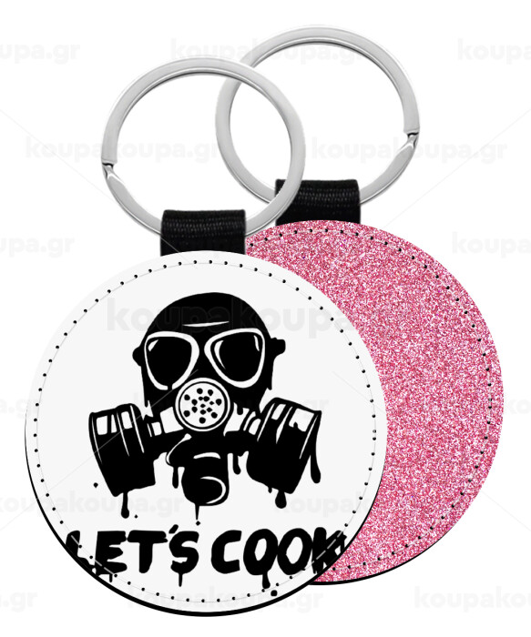 Let's cook mask, Μπρελόκ Δερματίνη, στρογγυλό ΡΟΖ (5cm)