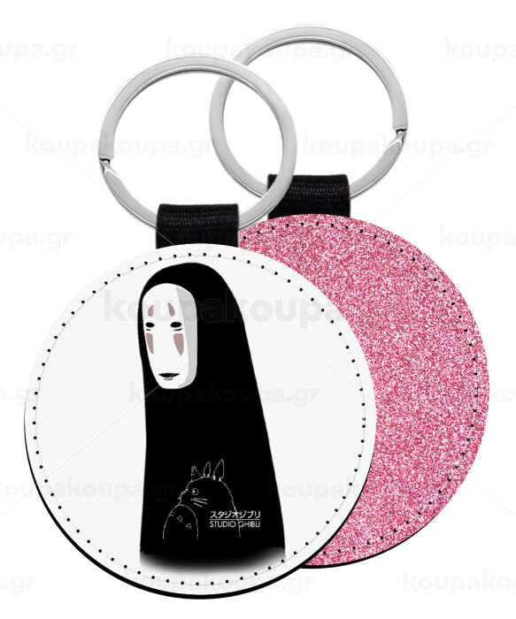 Spirited Away No Face, Μπρελόκ Δερματίνη, στρογγυλό ΡΟΖ (5cm)