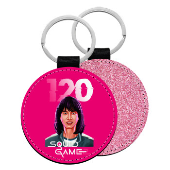 Squid game 120 Cho Hyun-ju, Μπρελόκ Δερματίνη, στρογγυλό ΡΟΖ (5cm)