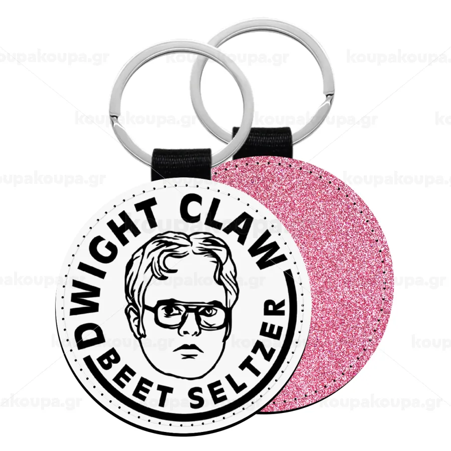 The office Dwight Claw (beet seltzer), Μπρελόκ Δερματίνη, στρογγυλό ΡΟΖ (5cm)