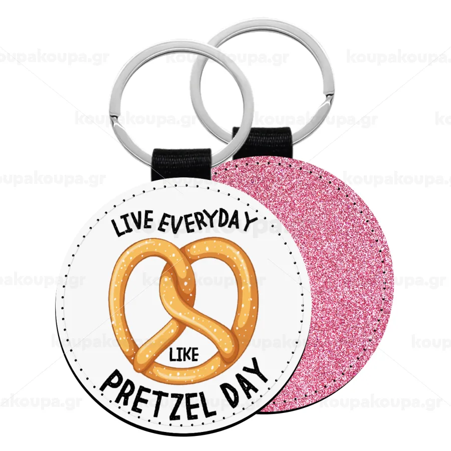 The office, Live every day like pretzel day, Μπρελόκ Δερματίνη, στρογγυλό ΡΟΖ (5cm)