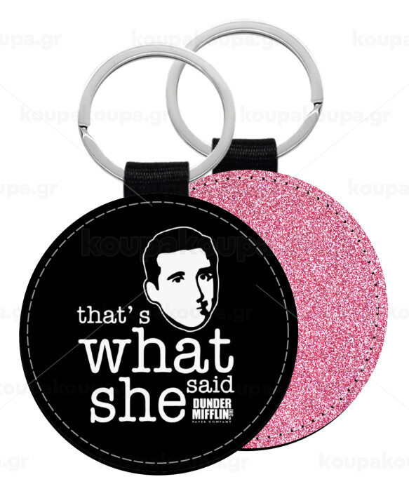 The office Michael That's what she said, Μπρελόκ Δερματίνη, στρογγυλό ΡΟΖ (5cm)
