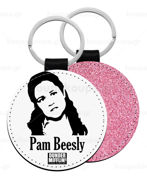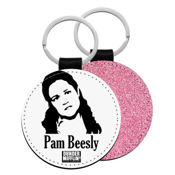 The office Pam Beesly, Μπρελόκ Δερματίνη, στρογγυλό ΡΟΖ (5cm)
