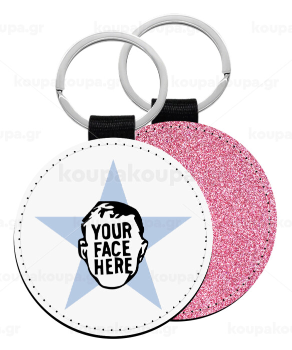 Leatherette keychain with glitter on one side and high resistance leatherette on the other. Safety ring for the keys.