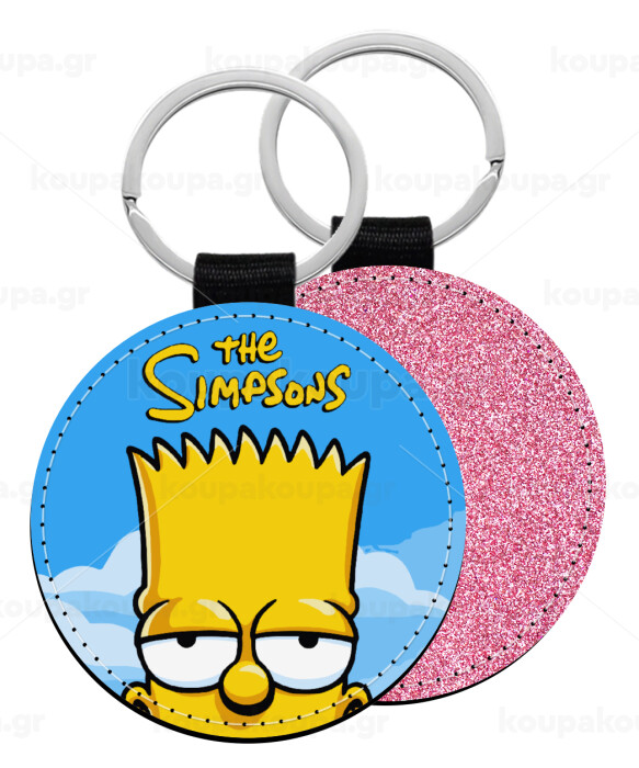 The Simpsons Bart, Μπρελόκ Δερματίνη, στρογγυλό ΡΟΖ (5cm)