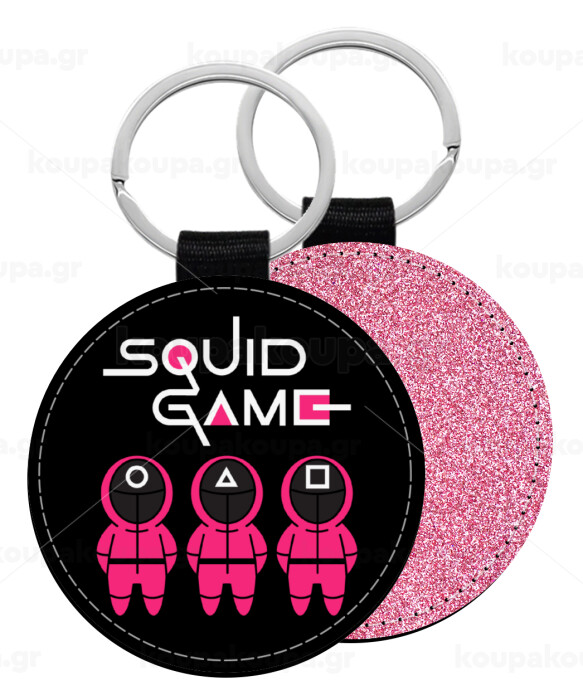 The squid game characters, Μπρελόκ Δερματίνη, στρογγυλό ΡΟΖ (5cm)