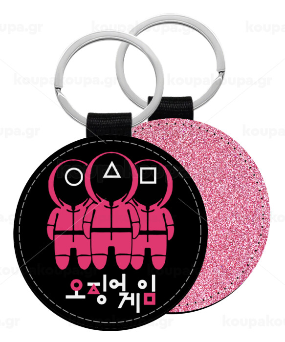 The squid game, Μπρελόκ Δερματίνη, στρογγυλό ΡΟΖ (5cm)