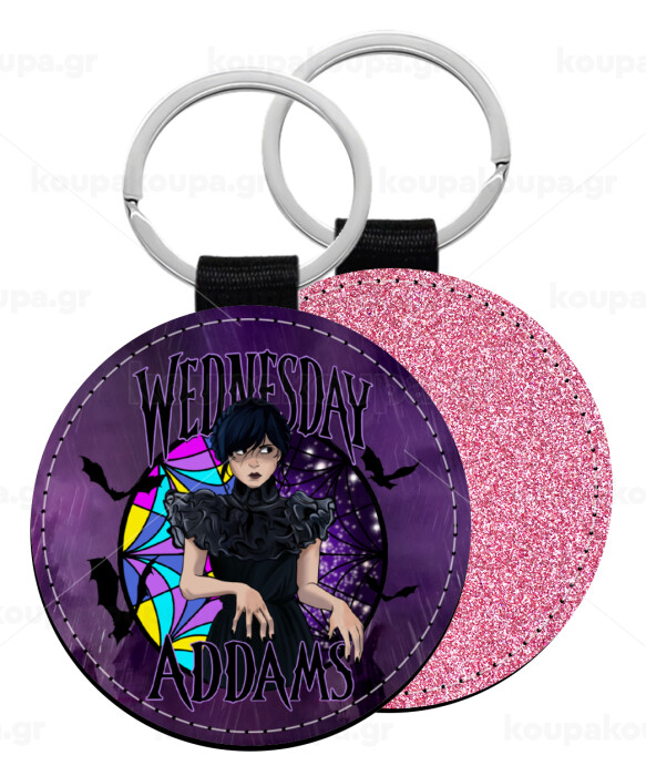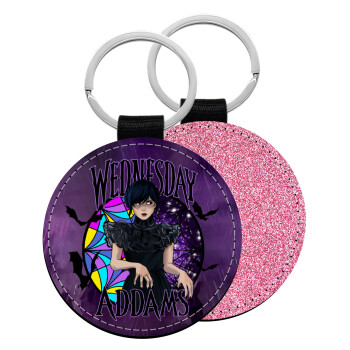 Wednesday Jenna Ortega, Μπρελόκ Δερματίνη, στρογγυλό ΡΟΖ (5cm)