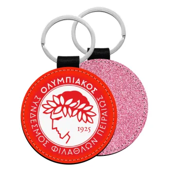 Ολυμπιακός, Μπρελόκ Δερματίνη, στρογγυλό ΡΟΖ (5cm)