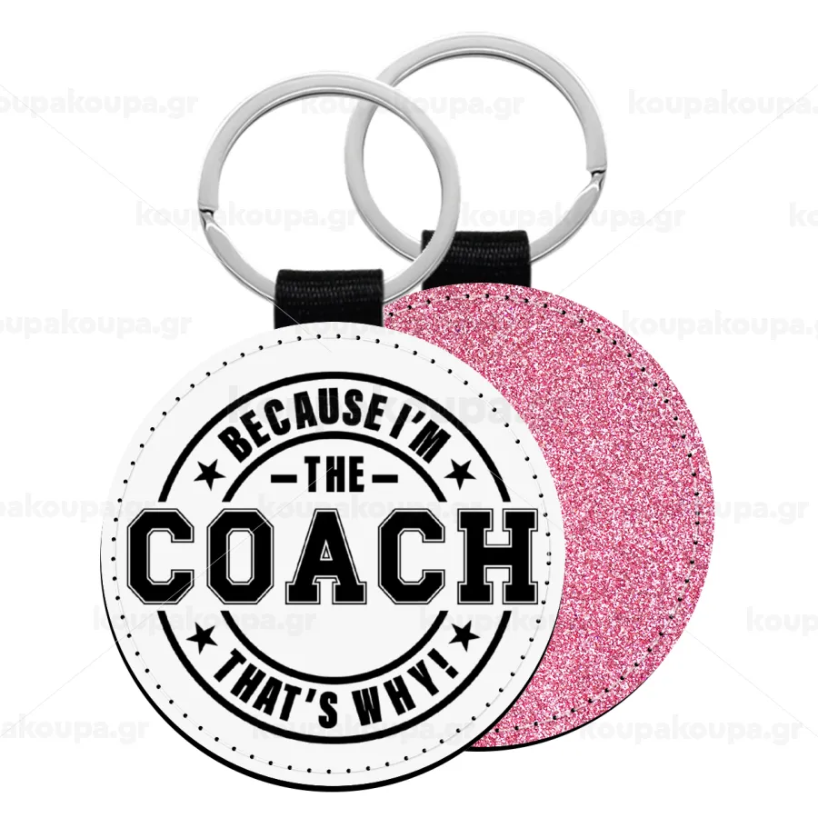 Because i'm the Coach, Μπρελόκ Δερματίνη, στρογγυλό ΡΟΖ (5cm)