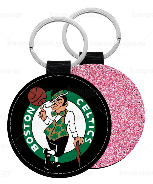 Boston Celtics, Μπρελόκ Δερματίνη, στρογγυλό ΡΟΖ (5cm)