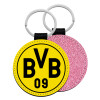 BVB Dortmund, Μπρελόκ Δερματίνη, στρογγυλό ΡΟΖ (5cm)