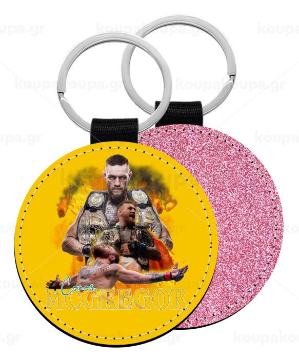 Conor McGregor Notorious, Μπρελόκ Δερματίνη, στρογγυλό ΡΟΖ (5cm)
