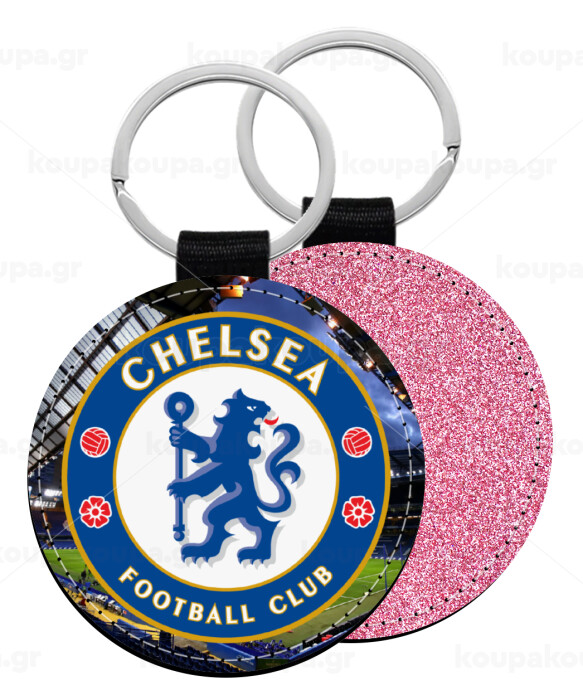 FC Chelsea, Μπρελόκ Δερματίνη, στρογγυλό ΡΟΖ (5cm)