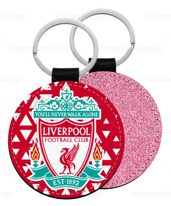 Liverpool, Μπρελόκ Δερματίνη, στρογγυλό ΡΟΖ (5cm)