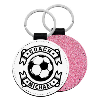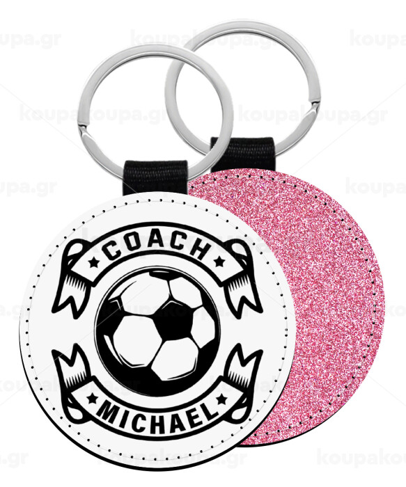 Soccer coach, Μπρελόκ Δερματίνη, στρογγυλό ΡΟΖ (5cm)