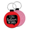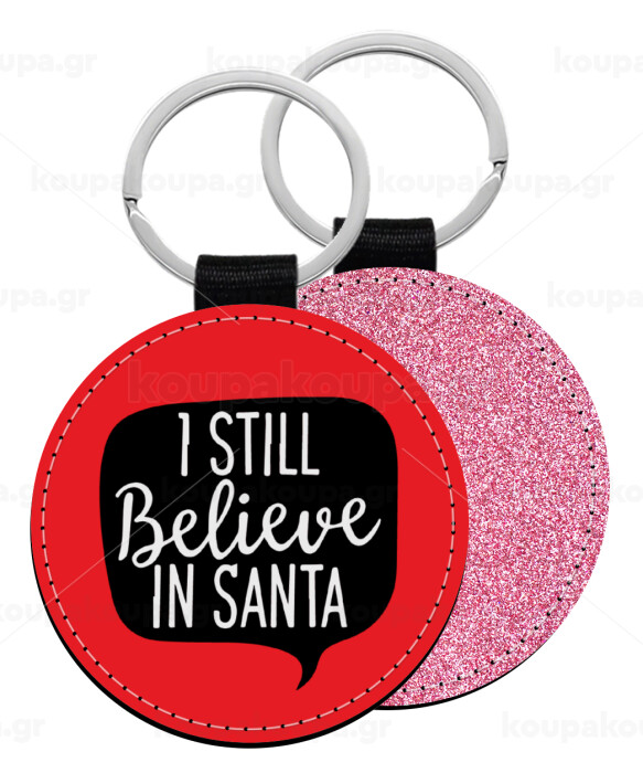 Ι still believe in santa, Μπρελόκ Δερματίνη, στρογγυλό ΡΟΖ (5cm)