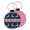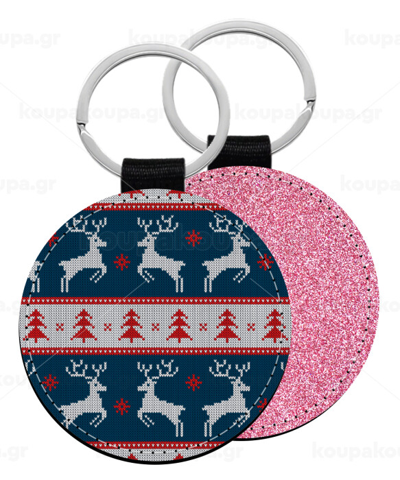 Deer knitted blue, Μπρελόκ Δερματίνη, στρογγυλό ΡΟΖ (5cm)