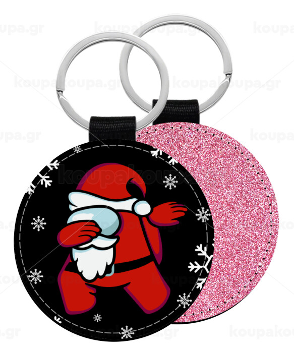 Among US Xmas, Μπρελόκ Δερματίνη, στρογγυλό ΡΟΖ (5cm)