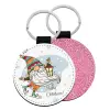 Christmas nordic gnomes, Μπρελόκ Δερματίνη, στρογγυλό ΡΟΖ (5cm)