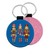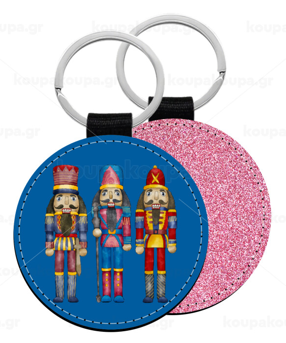 Christmas Nutcrackers, Μπρελόκ Δερματίνη, στρογγυλό ΡΟΖ (5cm)