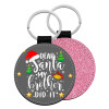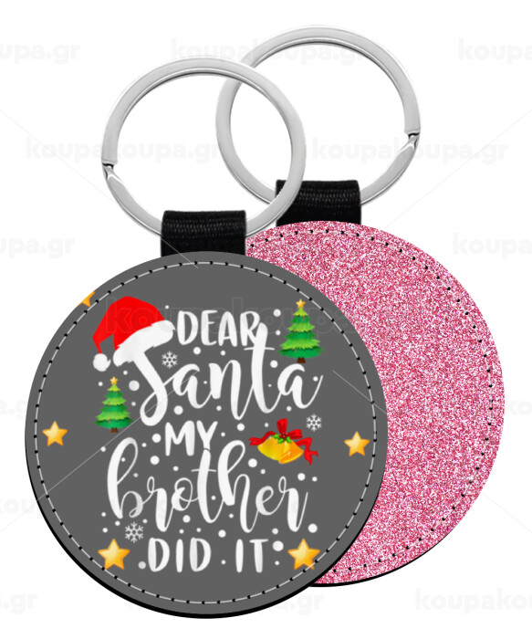 Dear santa my Brother did it, Μπρελόκ Δερματίνη, στρογγυλό ΡΟΖ (5cm)