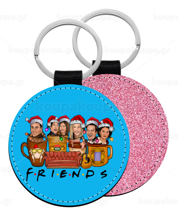 FRIENDS xmas, Μπρελόκ Δερματίνη, στρογγυλό ΡΟΖ (5cm)