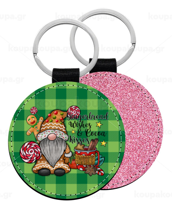 Gingerbread Wishes, Μπρελόκ Δερματίνη, στρογγυλό ΡΟΖ (5cm)