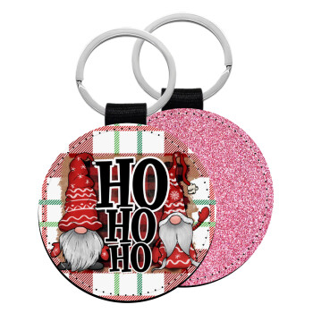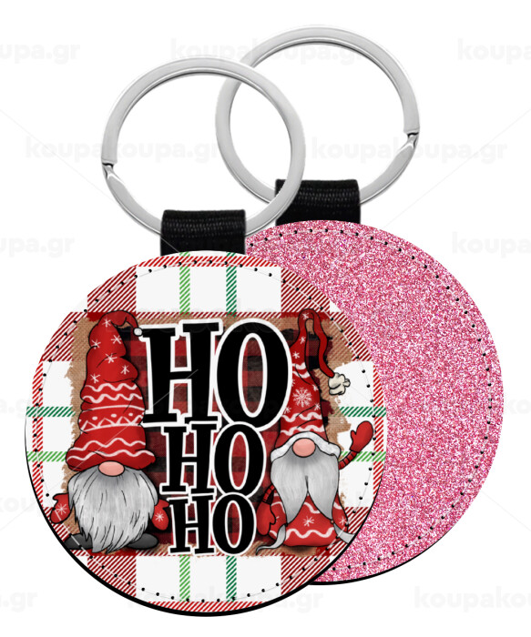 Ho ho ho, Μπρελόκ Δερματίνη, στρογγυλό ΡΟΖ (5cm)