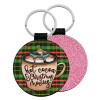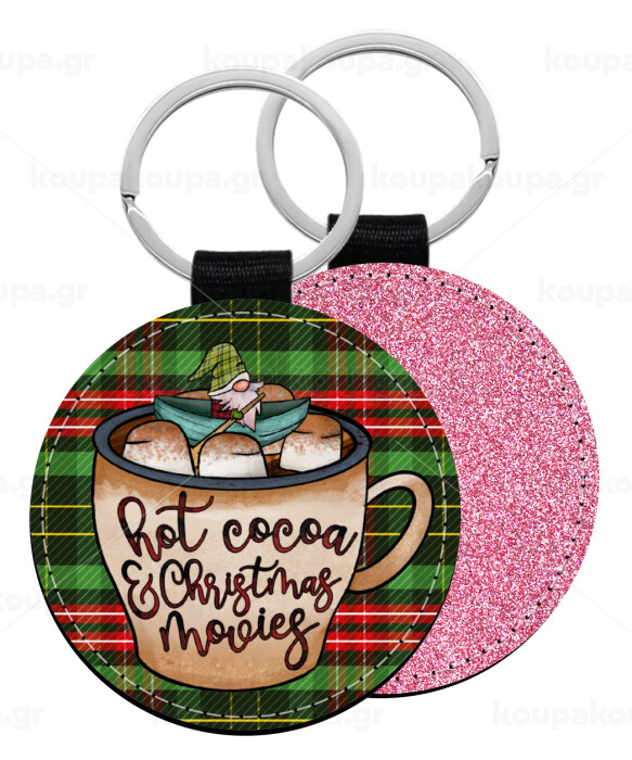 Hot Cocoa And Christmas Movies, Μπρελόκ Δερματίνη, στρογγυλό ΡΟΖ (5cm)