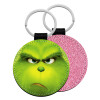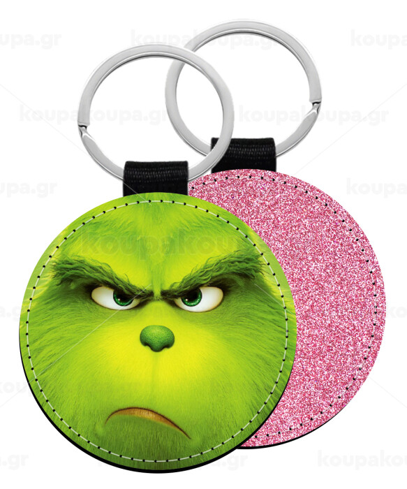 mr grinch, Μπρελόκ Δερματίνη, στρογγυλό ΡΟΖ (5cm)