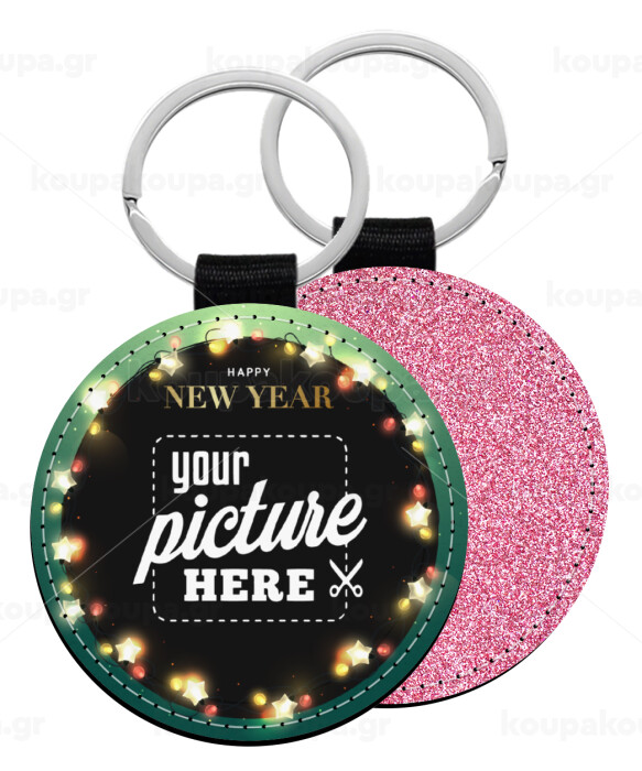 PHOTO xmas lights, Μπρελόκ Δερματίνη, στρογγυλό ΡΟΖ (5cm)