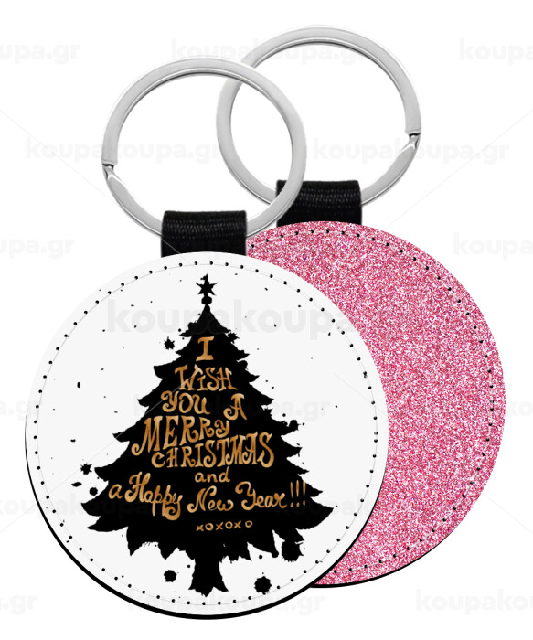 Tree, i wish you a merry christmas and a Happy New Year!!! xoxoxo, Μπρελόκ Δερματίνη, στρογγυλό ΡΟΖ (5cm)
